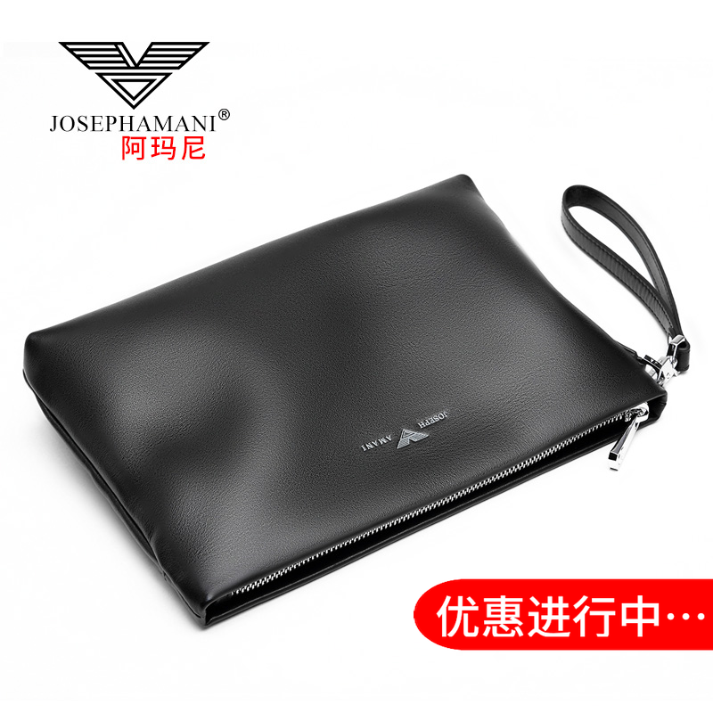 卓梵 阿玛尼男包商务休闲拉链手拿 包信封包牛皮大容量手包男真皮