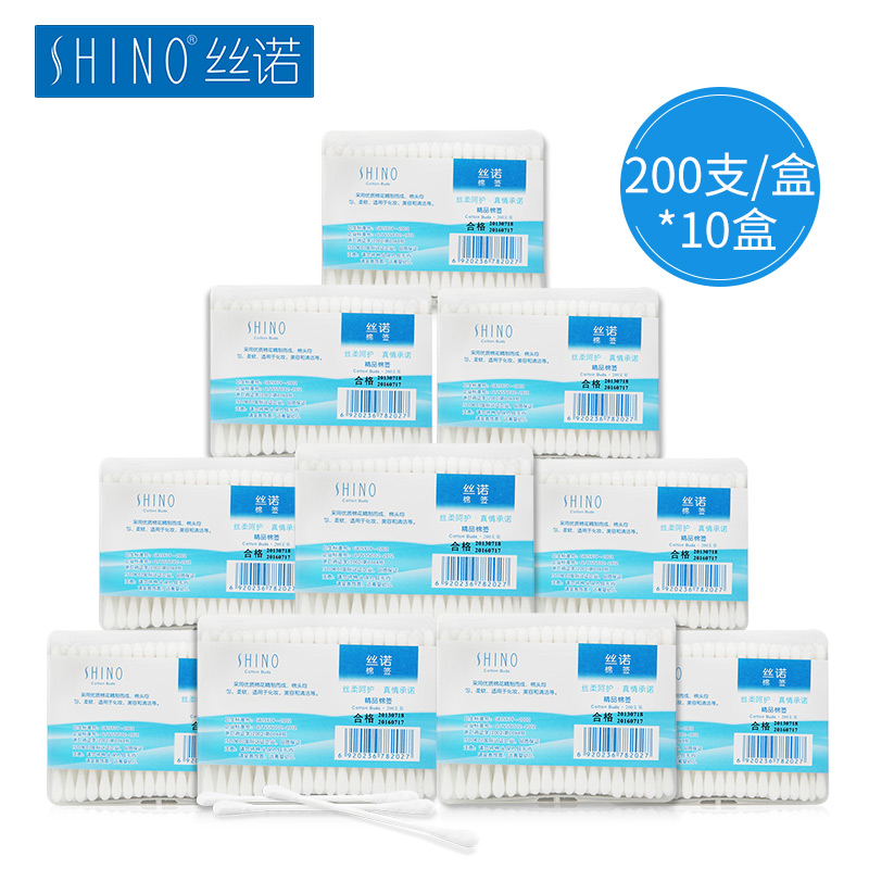 颜色分类:棉签200支*10盒装 美容工具品种:棉花棒 品牌:SHINO//丝诺 化妆/美容工具单品:棉签组合 规格类型:正常规格 产地:中国 查看全文