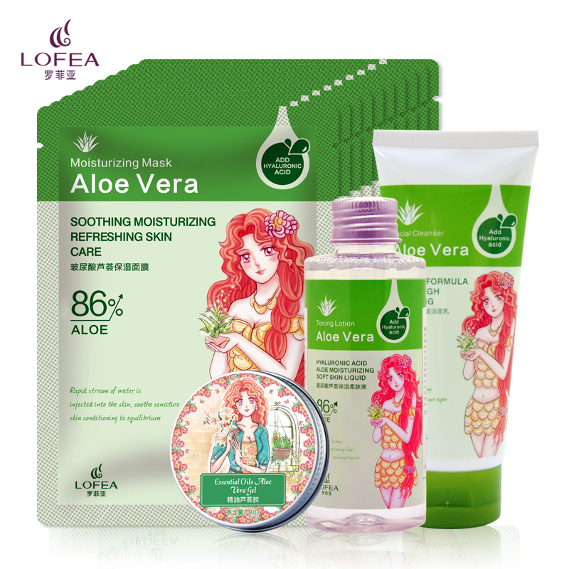 LOFEA/罗菲亚芦荟护肤4件套装 洗面奶芦荟胶柔肤液面膜补水保湿