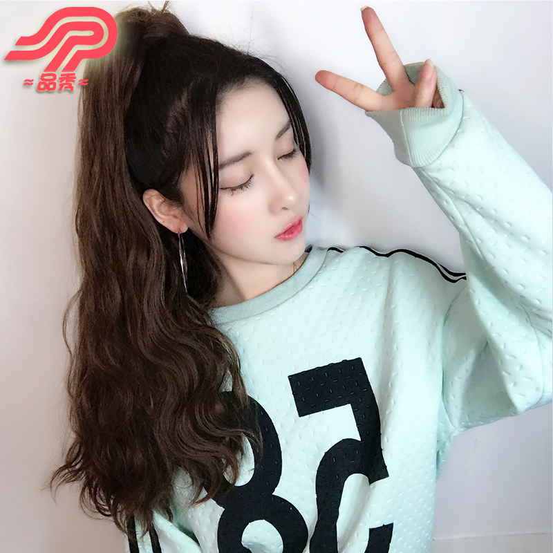 的热门产品品秀 实拍长卷发假发 仿真发捆绑式马尾假发 短款梨花假马尾 接发