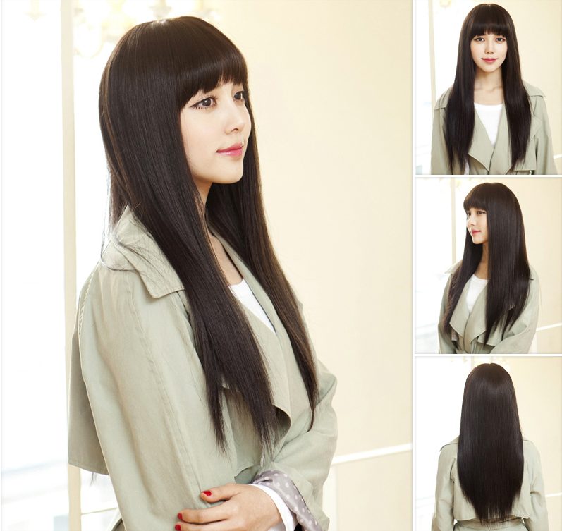 预售全手织女士真人发假发套 全手工钩织蓬松齐刘海女士长直发