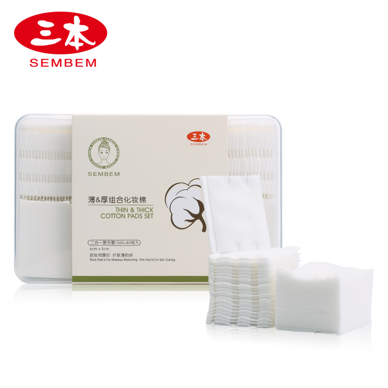 【天猫超市】三本化妆棉500片薄款+化妆棉80片厚款组合装 二合一