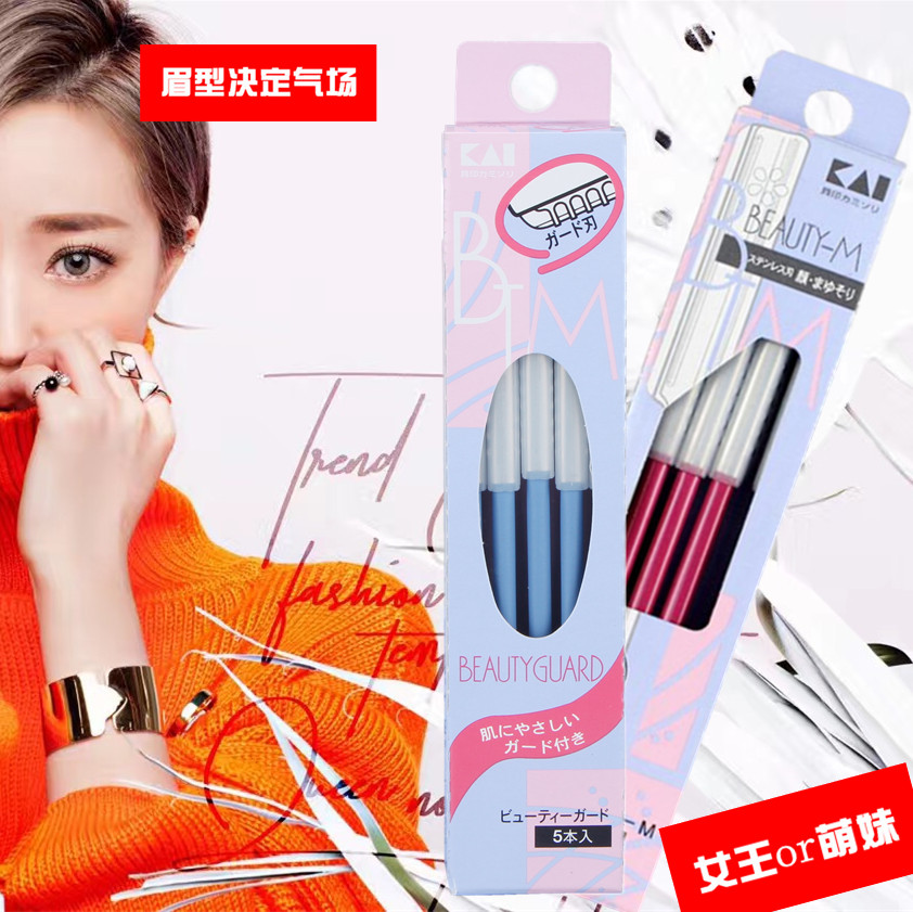 日本原装kai/贝印 5把盒装修眉刀刮眉刀防护网五把装刀口锋利耐用