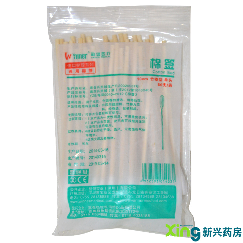 winner 稳健医疗 棉签50支皮肤消毒处理伤口涂抹药水时使用10个