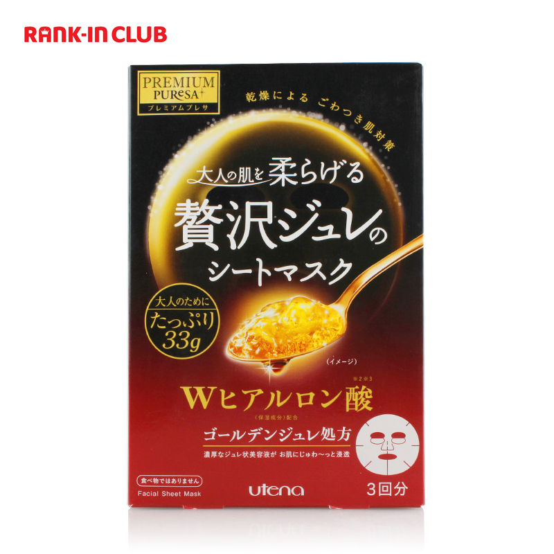 保税直发 日本Utena/佑天兰玻尿酸黄金啫喱果冻面膜 3枚入