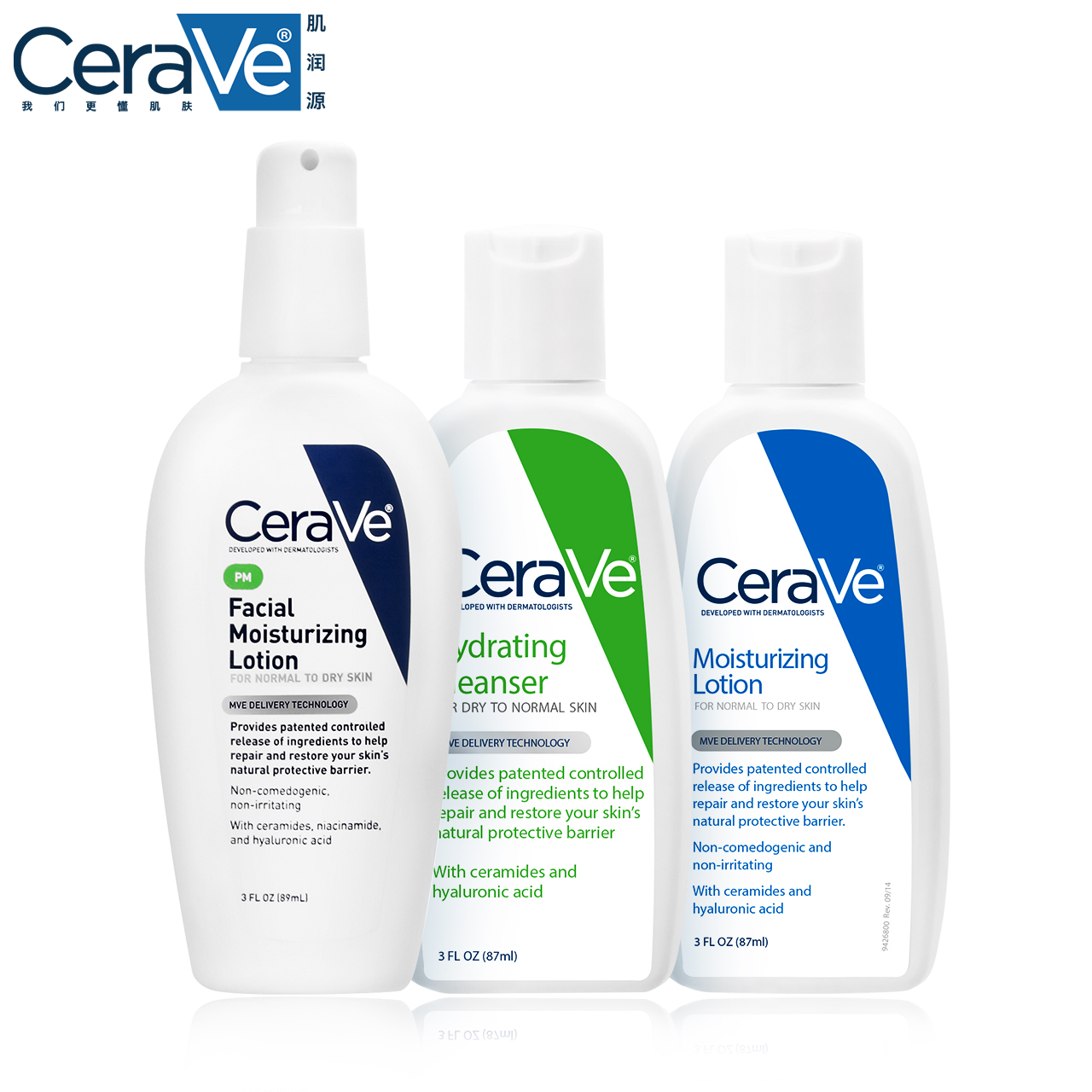 CeraVe洗面奶87ml乳液87mlpm霜89ml保湿补水滋润修护受损套装