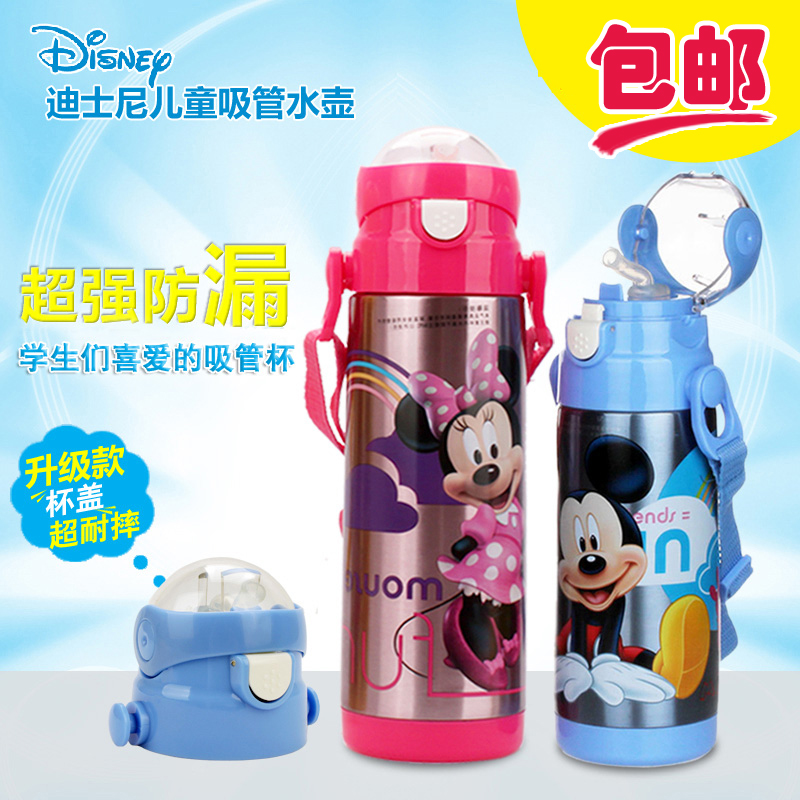 迪士尼保温吸管杯宝宝米奇学饮水杯儿童不锈钢背带防漏水杯5706