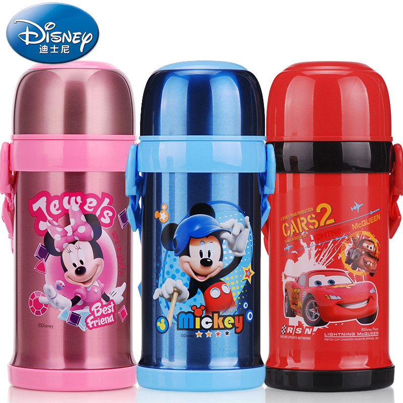 迪士尼5659不锈钢保温杯5655宝宝旅行水壶儿童学生防漏背带调奶杯