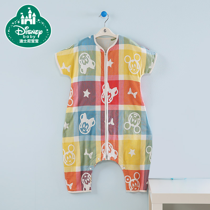 迪士尼宝宝短袖睡袋薄款睡袋防踢被儿童睡袋夏季纯棉纱布分腿睡袋