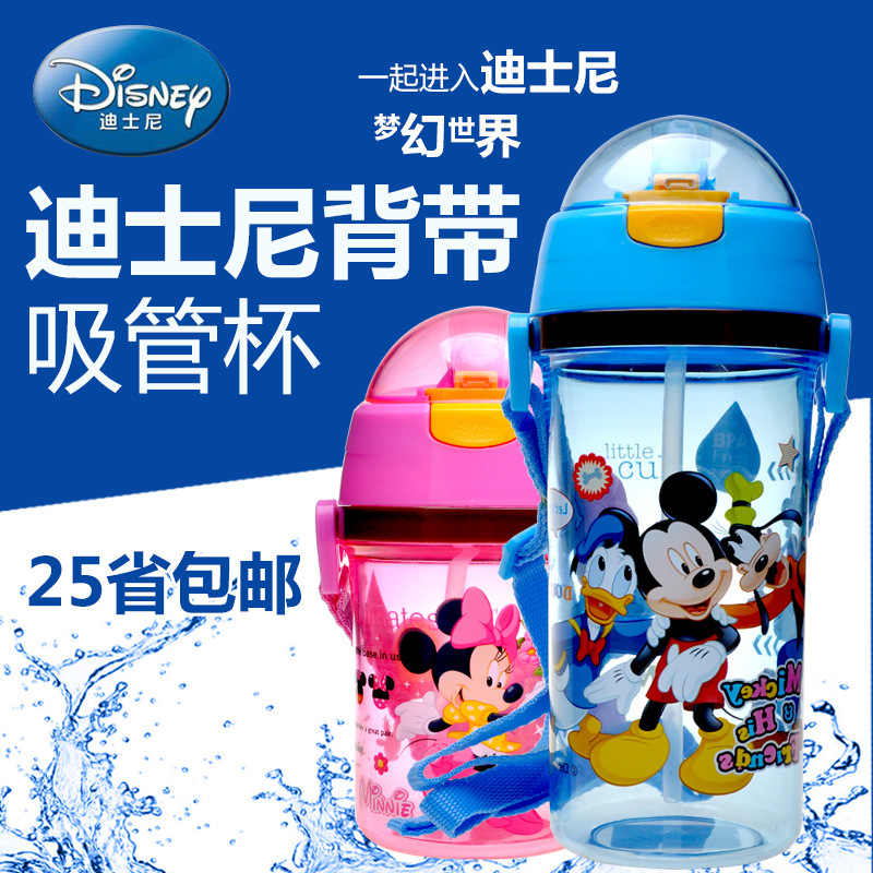 迪士尼儿童水杯带吸管杯米奇杯子便携学生水壶塑料杯夏季防漏水瓶