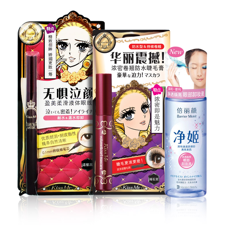 6折包邮 Kissme惊艳睫毛膏+玩味眼线胶笔+倍丽颜眼卸1支 套装划算