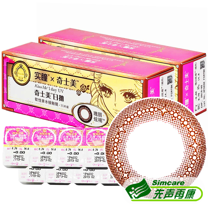 送同款20片】seed实瞳美瞳日抛奇士美Kiss Me棕彩色隐形眼镜60片