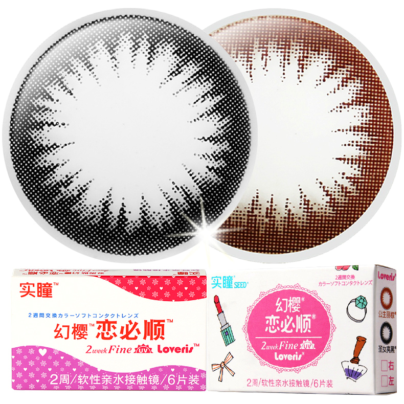 实瞳美瞳双周抛彩色隐形近视眼镜幻樱恋必顺两周抛6片装 包邮dy
