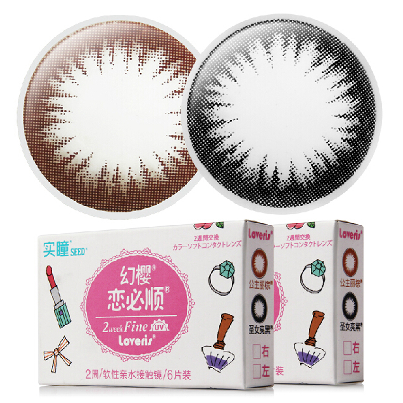 seed实瞳美瞳幻樱恋必顺彩色隐形眼镜两周抛6片装舒适透氧包邮