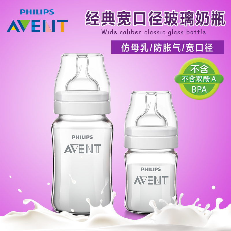 飞利浦新安怡新生儿奶瓶套装 经典宽口径防胀气玻璃奶瓶125/240ML