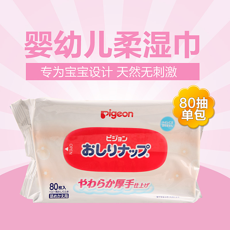 日本进口贝亲婴儿宝宝PP湿巾无酒精无刺激湿巾80片 补充装