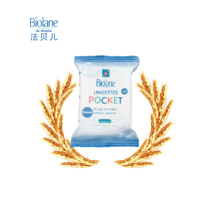 biolane法贝儿婴儿手口湿巾纸20抽便携袋装法国进口宝宝柔湿纸巾
