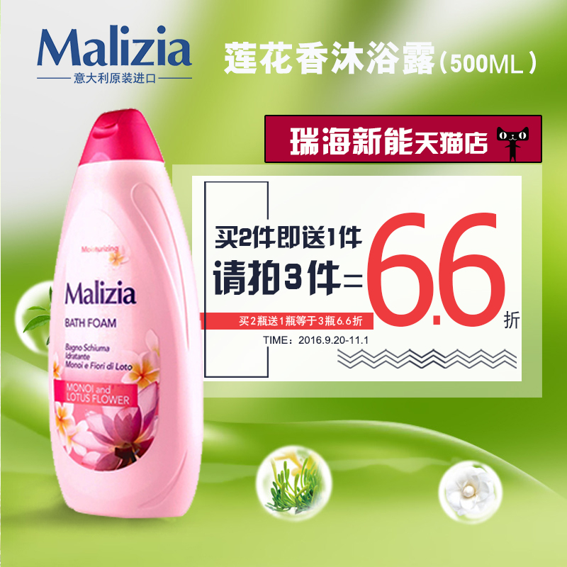 拍2送1 意大利进口Malizia玛莉吉亚 沐浴露 莫诺伊/莲花香型500ml