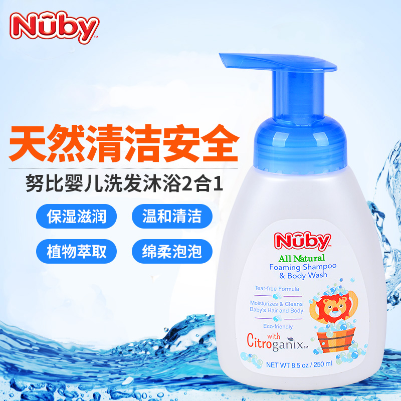 美国nuby/努比洗发水沐浴露二合一250mL新生婴儿童宝宝洗护2和1