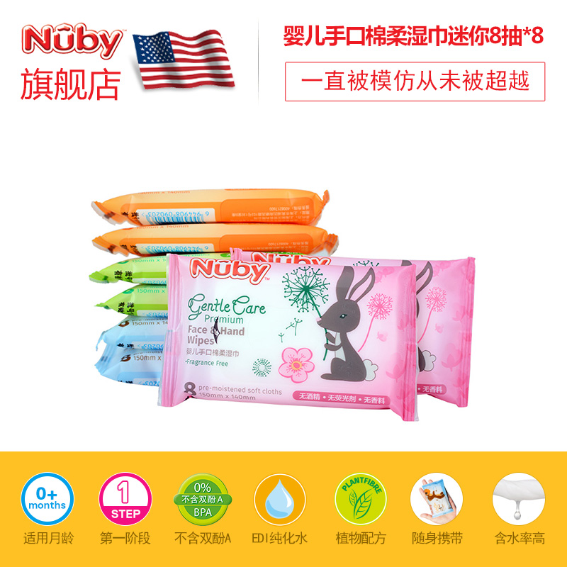 nuby/努比婴儿手口棉柔湿巾迷你8抽8包入(64片)