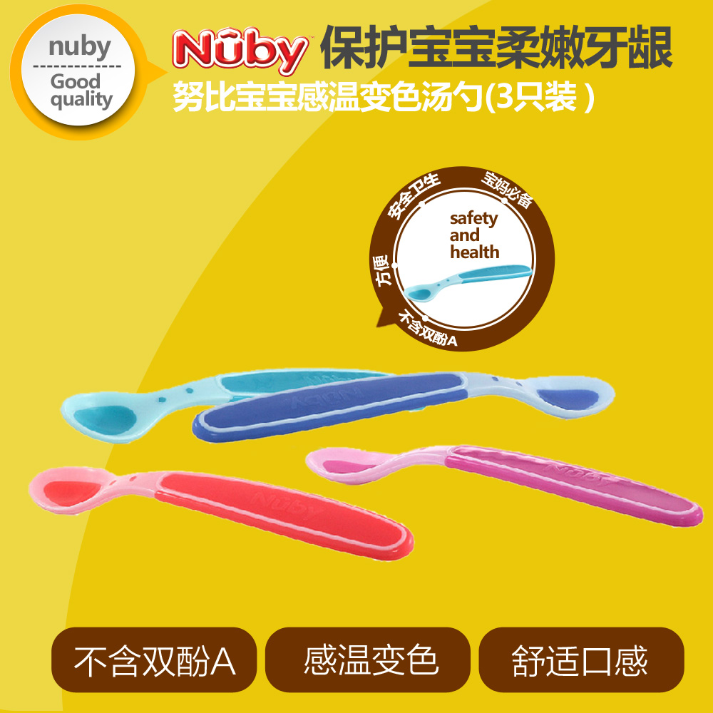 美国nuby/努比 婴儿宝宝儿童餐具喂食感温勺3只装