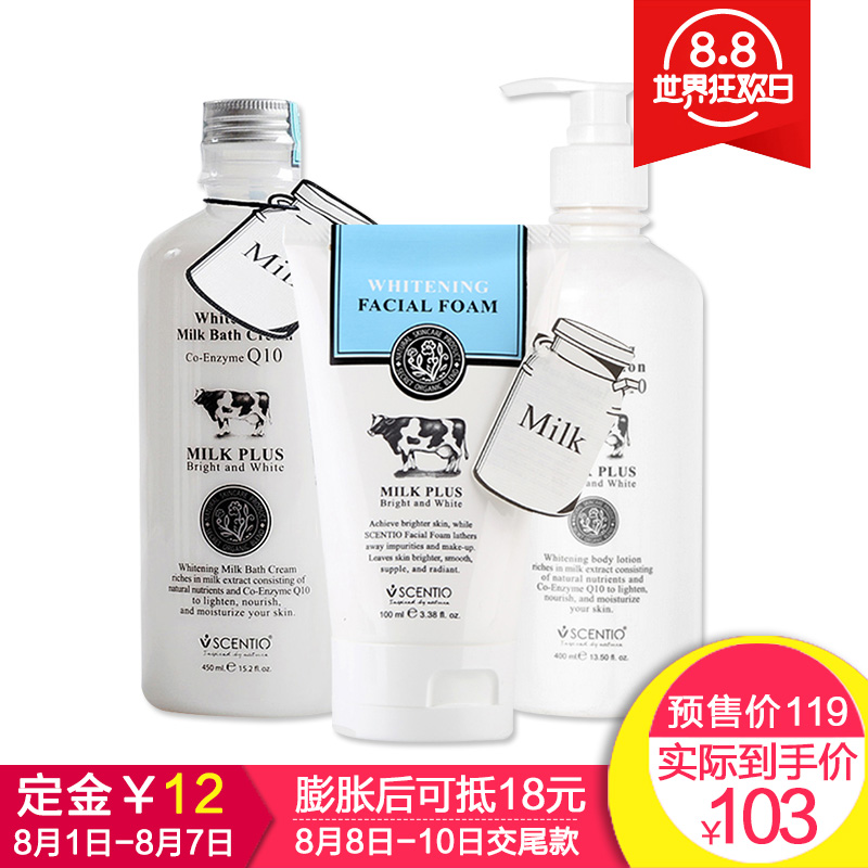 功效:美白 补水 保湿 抗皱 提亮肤色 规格类型:正常规格 品牌:SCENTIO 品名:Beauty Buffet Q10牛奶套装 产地:泰国 查看全文