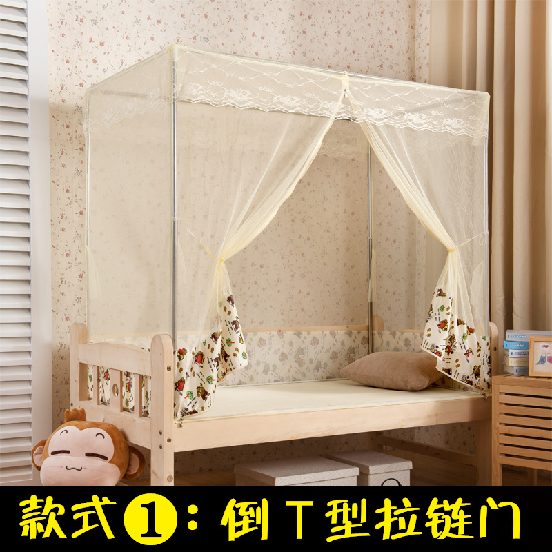 蚊帐宿舍拉链单人床方顶单门学生寝室上下铺1.0/1.2/1.35m床加密