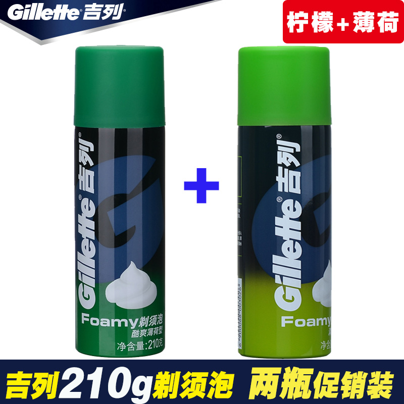 【薄荷+柠檬】 吉列剃须泡沫210g*2瓶 手动剃须刀用刮胡泡剃须膏