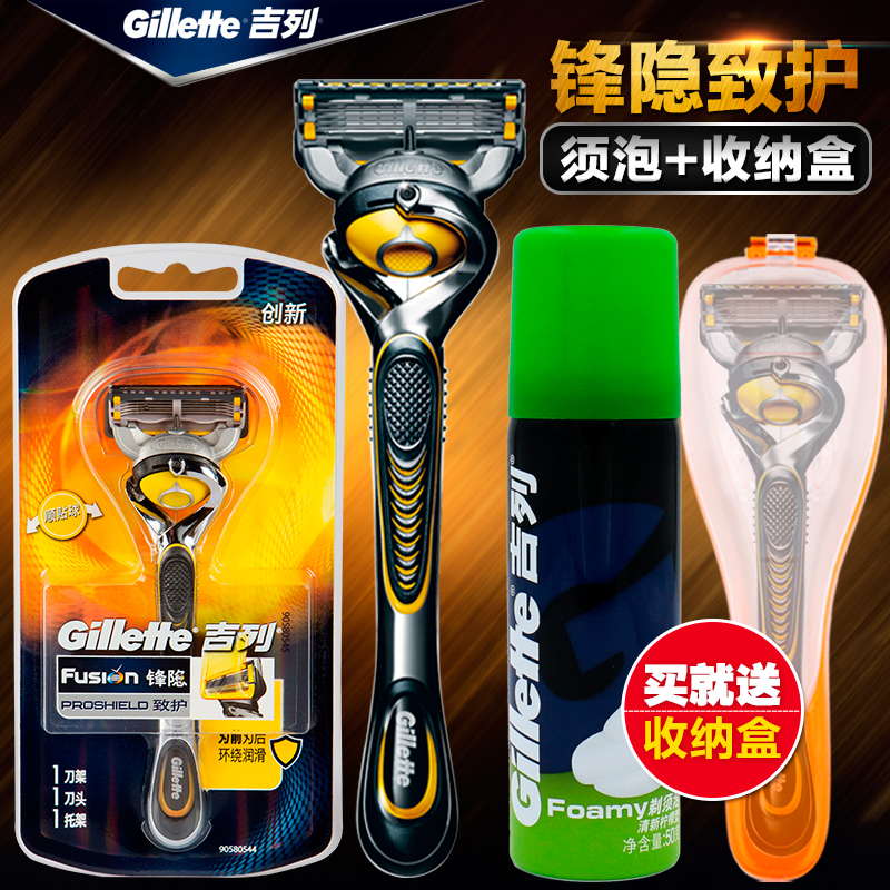 吉列锋隐致护手动剃须刀吉利锋速5刀片男士刮胡刀架刀头须泡盒子