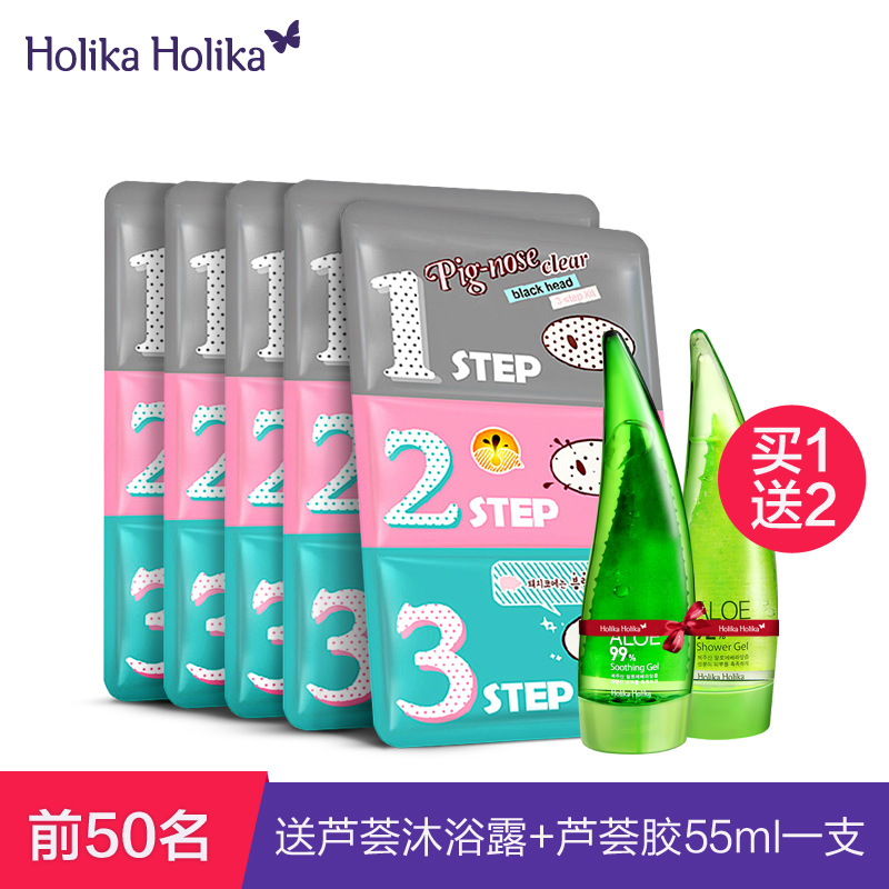 惑丽客/HOLIKA 猪鼻贴5片装+芦荟胶250ml+芦荟胶55ml+沐浴露55ml