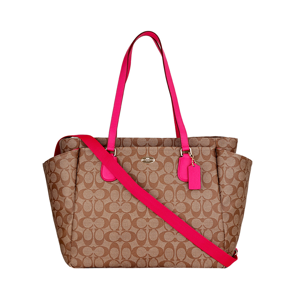 销售渠道类型:商场同款(线上线下都销售) 上市时间:2015年夏季 品牌:COACH/蔻驰 款式:单肩包 大小:中 流行款式名称:其他 背包方式:单肩手提 质地:PVC 货号:35414 coach系列:其他 内部结构:卡位.拉链暗袋.手机袋 颜色分类:卡其配深粉色 IMCMY.米色SVAKI 查看全文