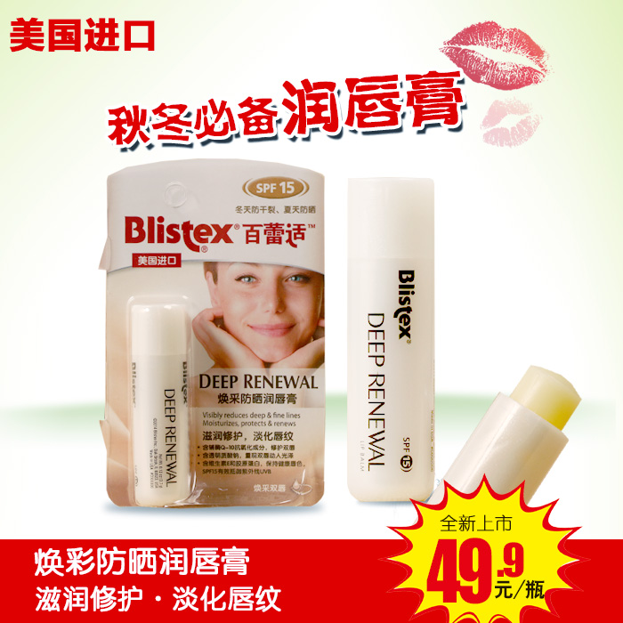 品牌:Blistex/百蕾适 型号:滋润修护润唇膏 产品分类:润唇膏 功能:唇部补水保湿 净含量:其它容量 查看全文