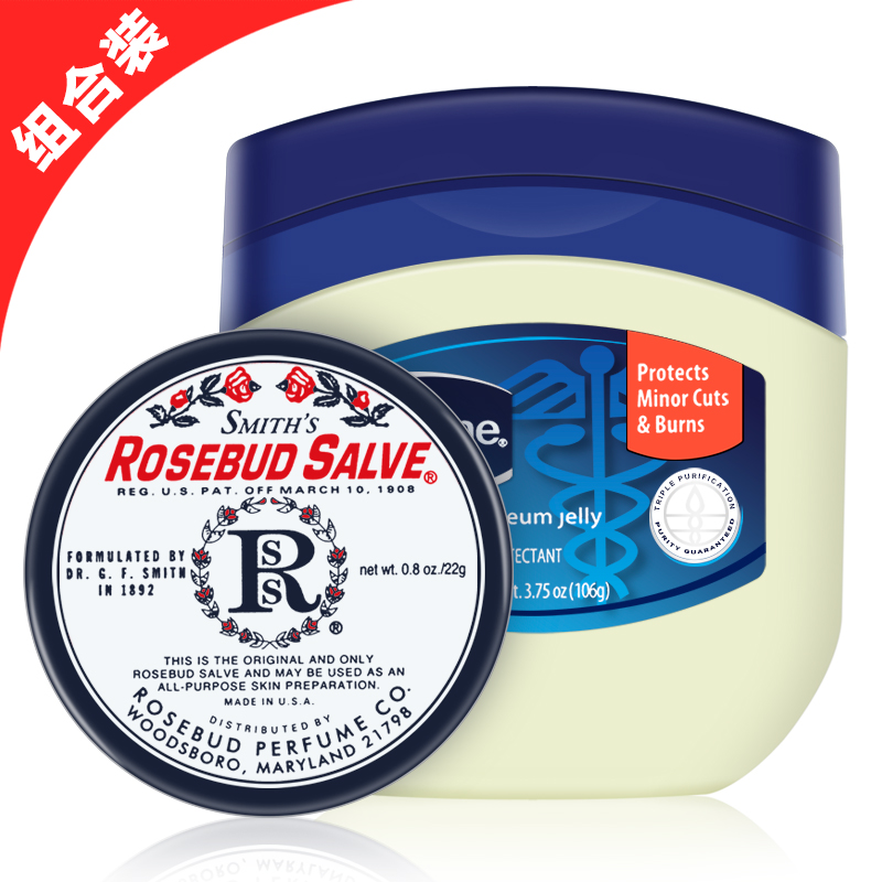 Rosebud Salve 玫瑰花蕾膏14.2g +凡士林天然润肤霜106G组合装