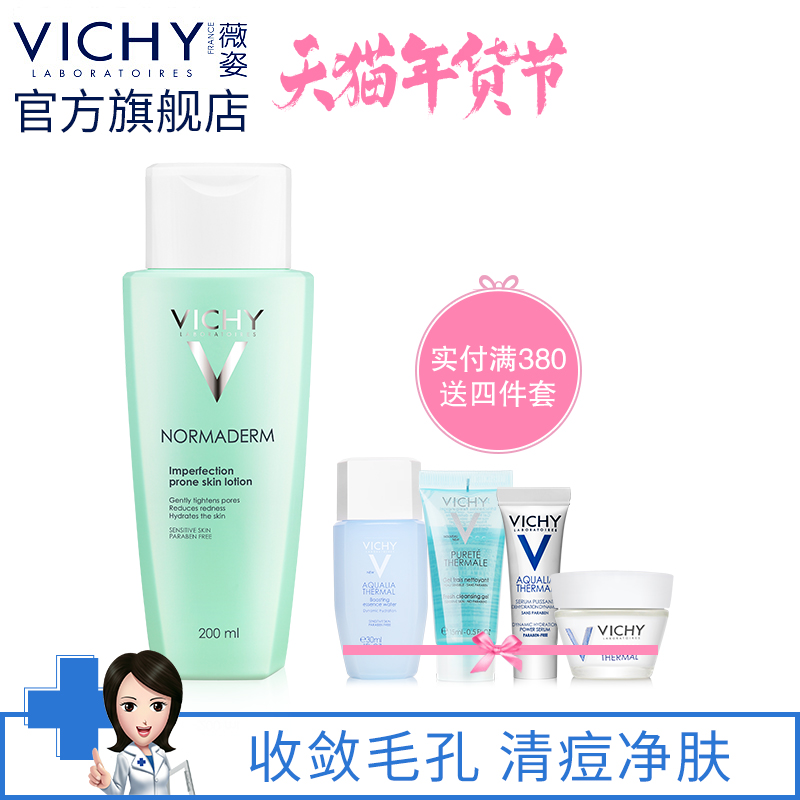 薇姿净颜无瑕祛痘保湿柔肤水200ml 紧致毛孔控油补水爽肤水 正品