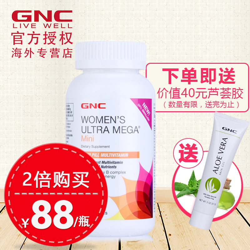 【送芦荟胶】美国GNC 女性多种维生素迷你片 90粒/瓶 2倍购买