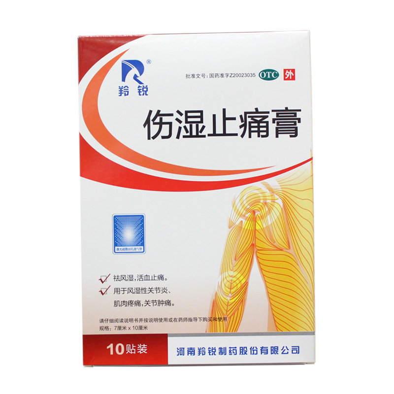 适用人群:不限 有效期:24个月 用法:皮肤外用 药品分类:非处方药 品牌:LINGRUI/羚锐 产品剂型:贴剂 类别:中药 生产企业:河南羚锐制药股份有限公司 规格:10片/盒 疾病:关节炎.风湿骨痛 使用剂量:外用,贴患处。一次1-2片,持续12小时,一日1次 症状:扭拉伤.风寒湿痹 药品名称:关节止痛膏 药品通用名:关节止痛膏 批准文号:国药准字 Z41020302 查看全文