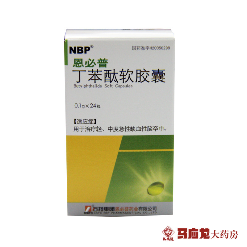 产品剂型:胶囊 适用人群:不限 药品类别:化学药 用法:口服 有效期:36个月 药品分类:处方药 品牌:CSPC/石药集团 症状:眩晕 疾病:中风 药品规格:0.1g*24粒*1瓶/盒 使用剂量:一次两粒(0.2g),一日三次。 批准文号:国药准字H20050299 生产企业:石药集团恩必普药业有限公司 药品名称:恩必普 丁苯酞软胶囊 药品商品名:恩必普 药品通用名:丁苯酞软胶囊 查看全文