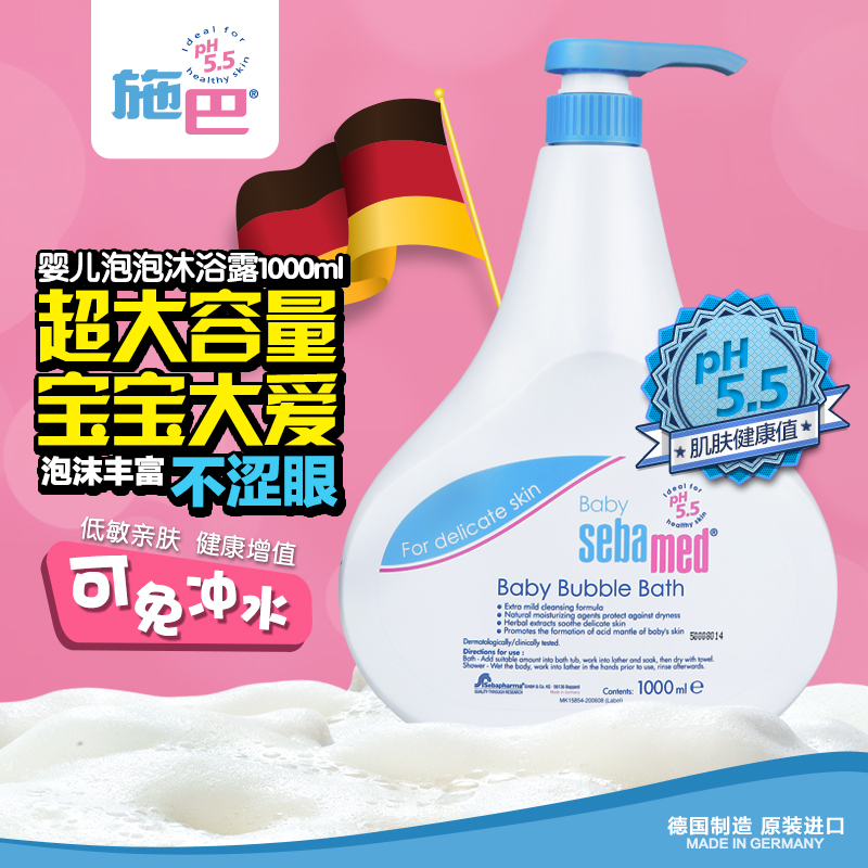 德国施巴婴儿童泡泡浴露1000mL/新生儿沐浴露宝宝沐浴洗发二合一