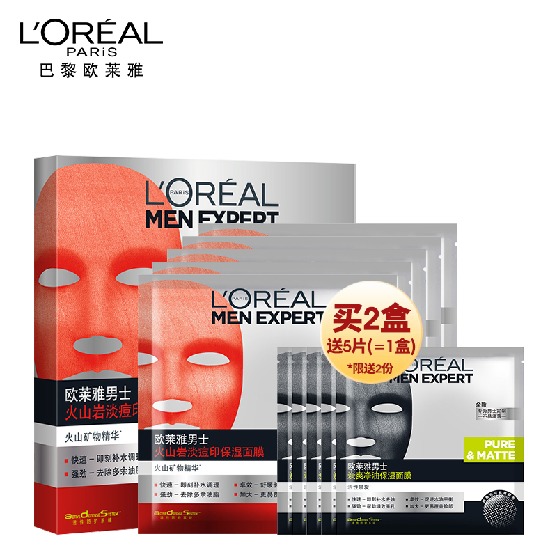 巴黎欧莱雅男士面膜火山岩去黑头祛痘淡痘印控油补水保湿收缩毛孔
