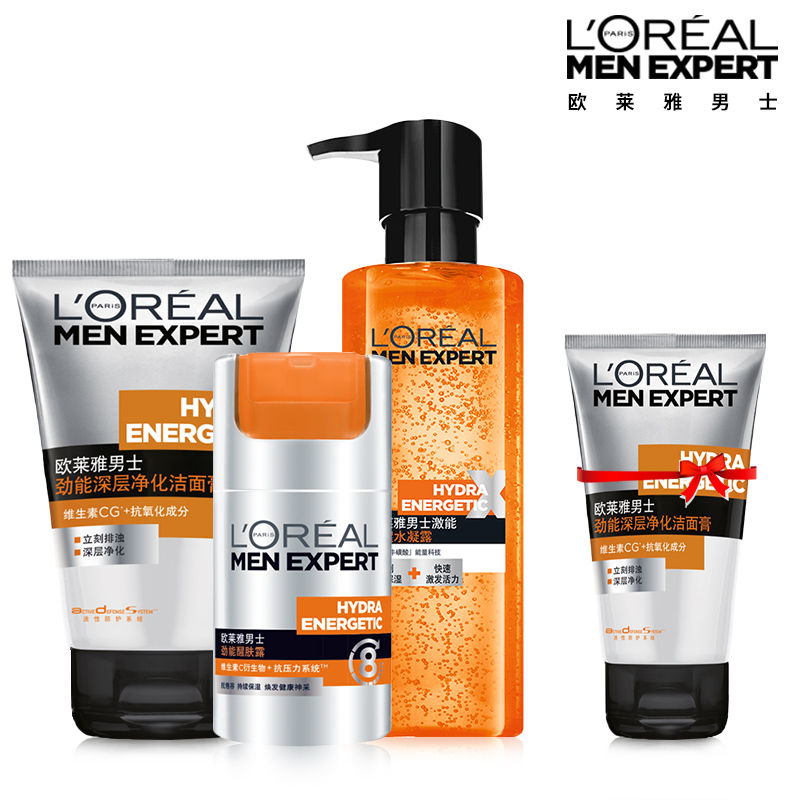 L'oreal/欧莱雅欧莱雅男士劲能醒肤露深层净化洁面保湿护肤套装