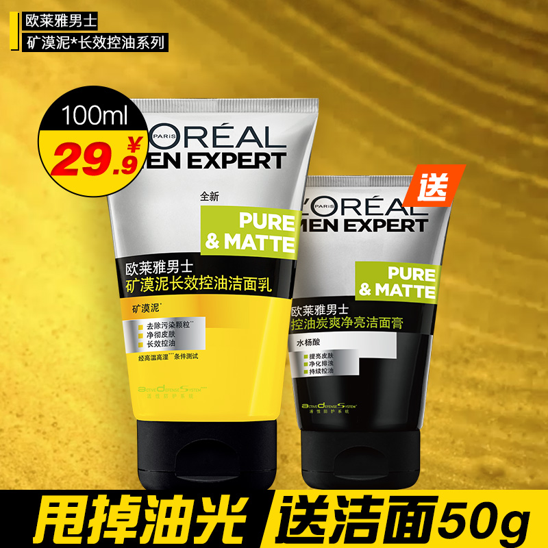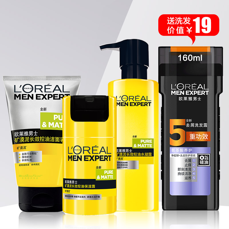 欧莱雅男士套装矿漠泥控油洗面奶夏季清爽去油护肤品乳液爽肤水