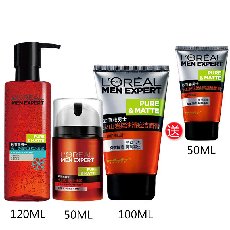 巴黎欧莱雅男士洗面奶控油祛痘印去痘黑头火山岩泥去油洁面乳套装