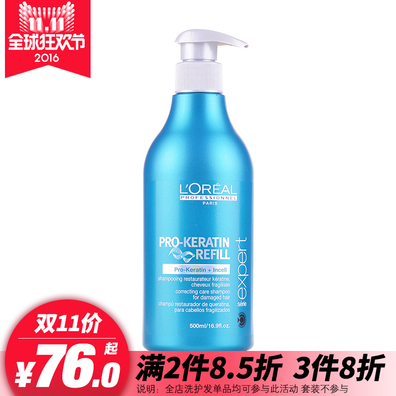 巴黎欧莱雅沙龙专属 蛋白修护洗发水250ml/500ml洗发露洗头膏女