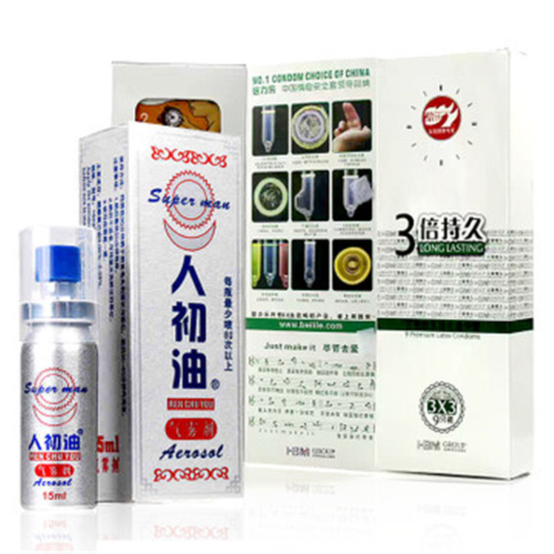 包邮倍力乐避孕套3倍中号9只装人初油气雾剂15ml喷雾气ys