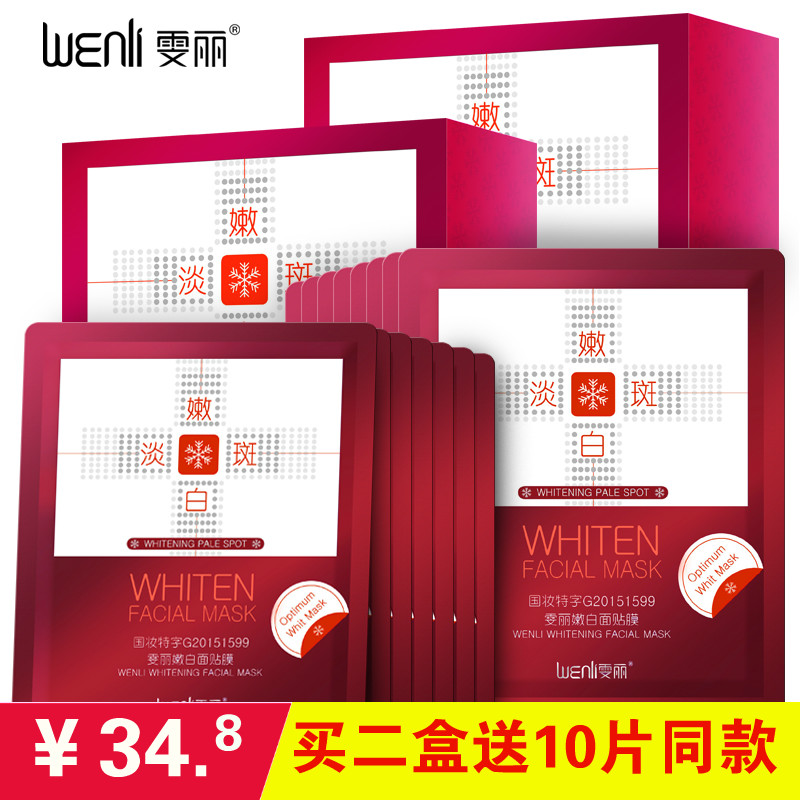 上市时间:2015年 月份:7月 产品类别:祛斑类 化妆品保质期:60个月 限期使用日期范围:2021-02-02至2021-10-23 面膜分类:贴片式 规格类型:正常规格 化妆品净含量:10片 品牌:雯丽 面膜单品:嫩白面贴膜10片装 是否为特殊用途化妆品:是 批准文号:国妆特字G20151599 功效:滋养肌肤、水润亮泽 补水 保湿 收缩毛孔 深层清洁 改善黯沉肤色 淡斑 美白提亮肤色 产地:中国 查看全文