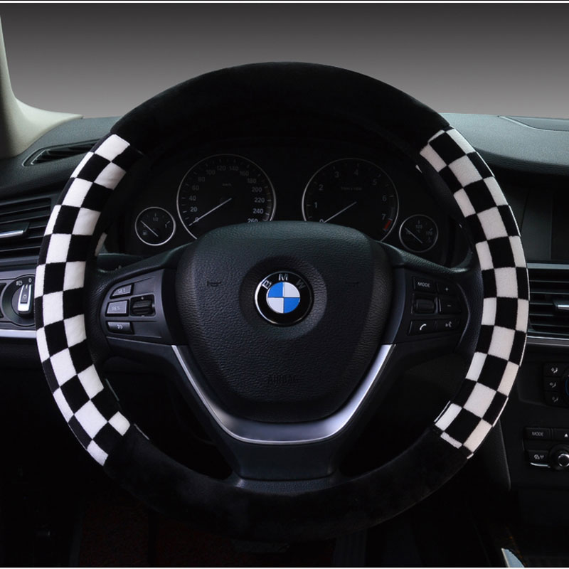 汽车冬季毛绒方向盘套方格菱形把套毛绒方向盘套汽车内饰用品中号