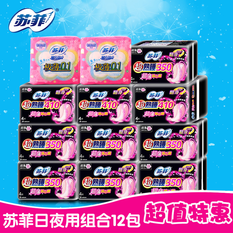 苏菲卫生巾 夜用超熟睡安心裤棉柔410mm日用弹力贴身超值组合