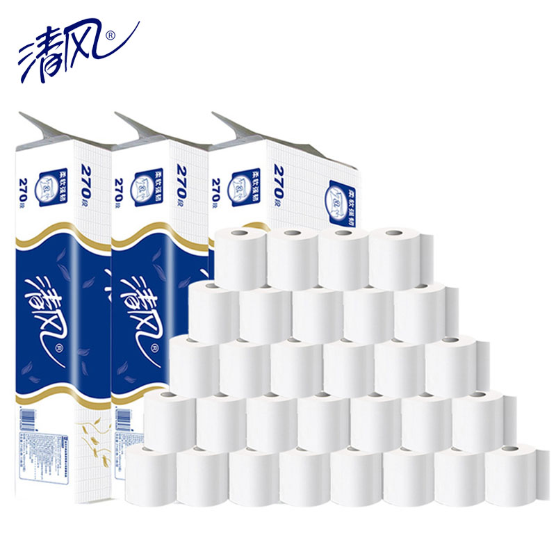 清风柔软强韧办公家用卷纸270段/卷*10卷X3提有芯卫生纸
