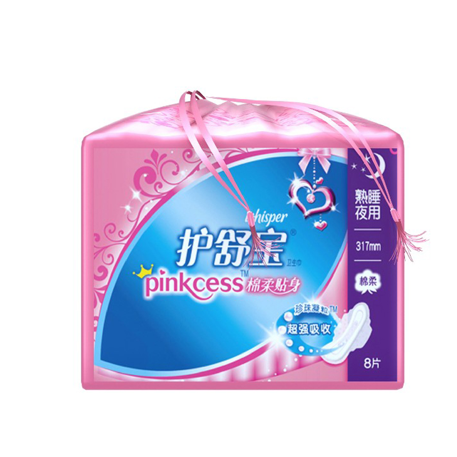 Whisper护舒宝pinkcess超净棉棉柔贴身熟睡夜用8片装 卫生巾