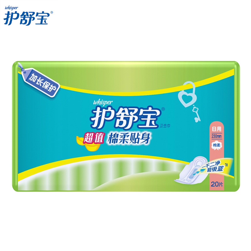 护舒宝超值棉柔贴身日用卫生巾20片姨妈巾日用正品装棉柔亲肤护翼